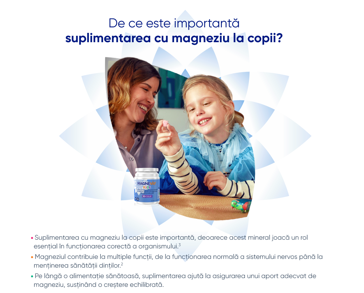Magneziul este unul dintre nutrienții cheie care asigură funcționarea corectă a organismului3, ideal pentru copiii ce trec prin puseuri de creștere.
